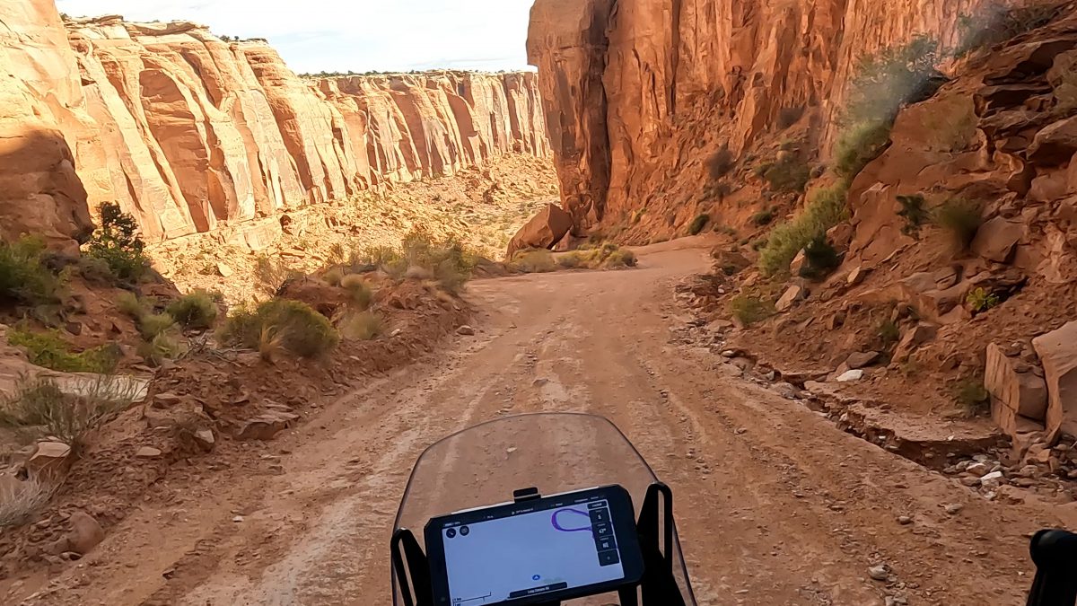 Onion Creek is always amazing! It was nice to have the whole crew before John and I split from the “newer” riders and continued onto the Colorado BDR. Between Onion Creek and Gateway, we found a couple of big challenges on the T7s! So much so I would say intermediate riders required! Steep, 90 degree angle near the top and big 1-1.5′ steps with lots of loose sand on the short climbs.