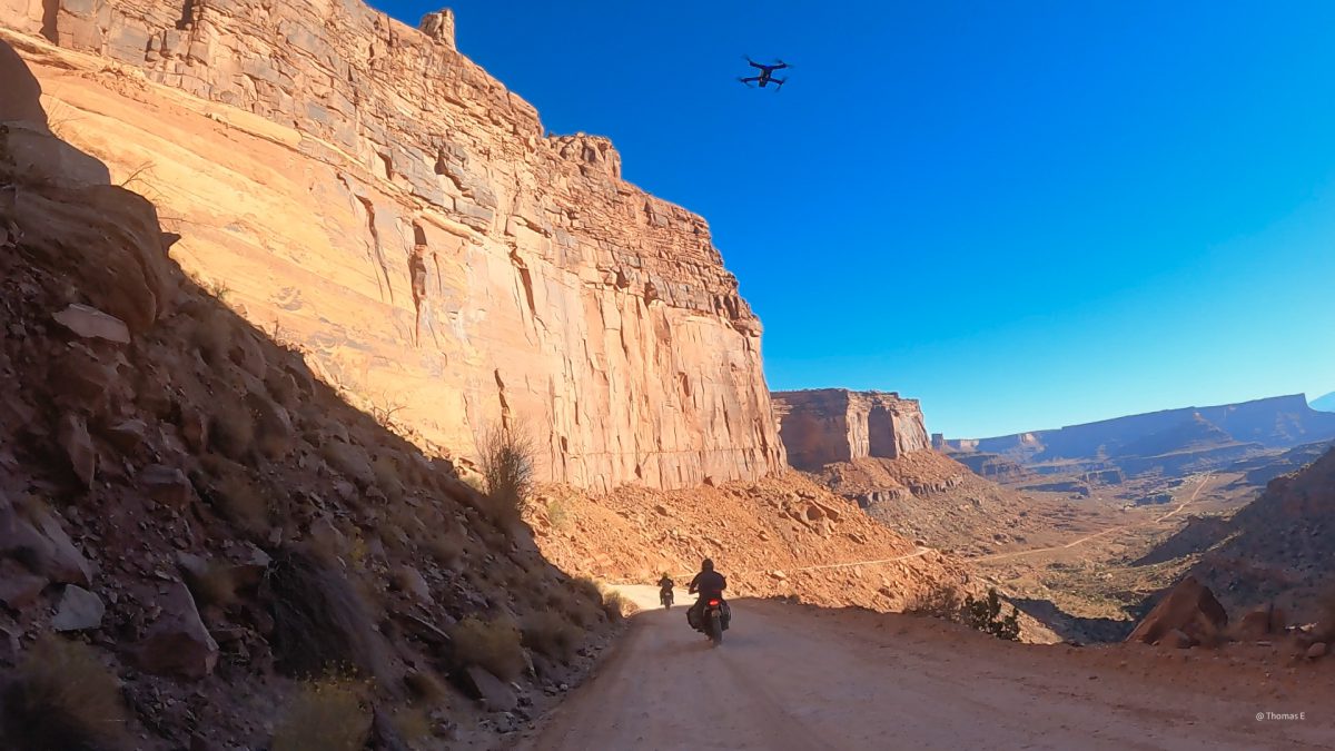 I wish I had droned all of the switchbacks instead of waiting 2-3 switchbacks. They are TIGHT and if you overshoot the turn or don’t make the turn, you go off a very very large cliff! I did dab/put my foot down on several of the switchbacks. I would much rather go up the switchbacks than down them!